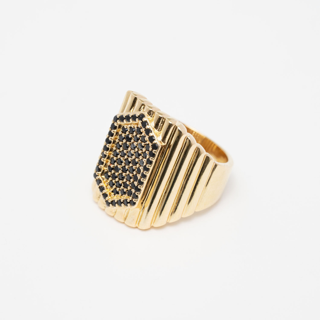 This chunky signet style ring is fast becoming our all time favourite statement piece. Made from 24ct gold plated brass with precious stone and zirconia detailing its quality is only surpassed by its beauty