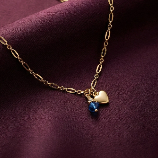Combining our intricate chain detailing with our contemporary heart charm and your hanging birthstone