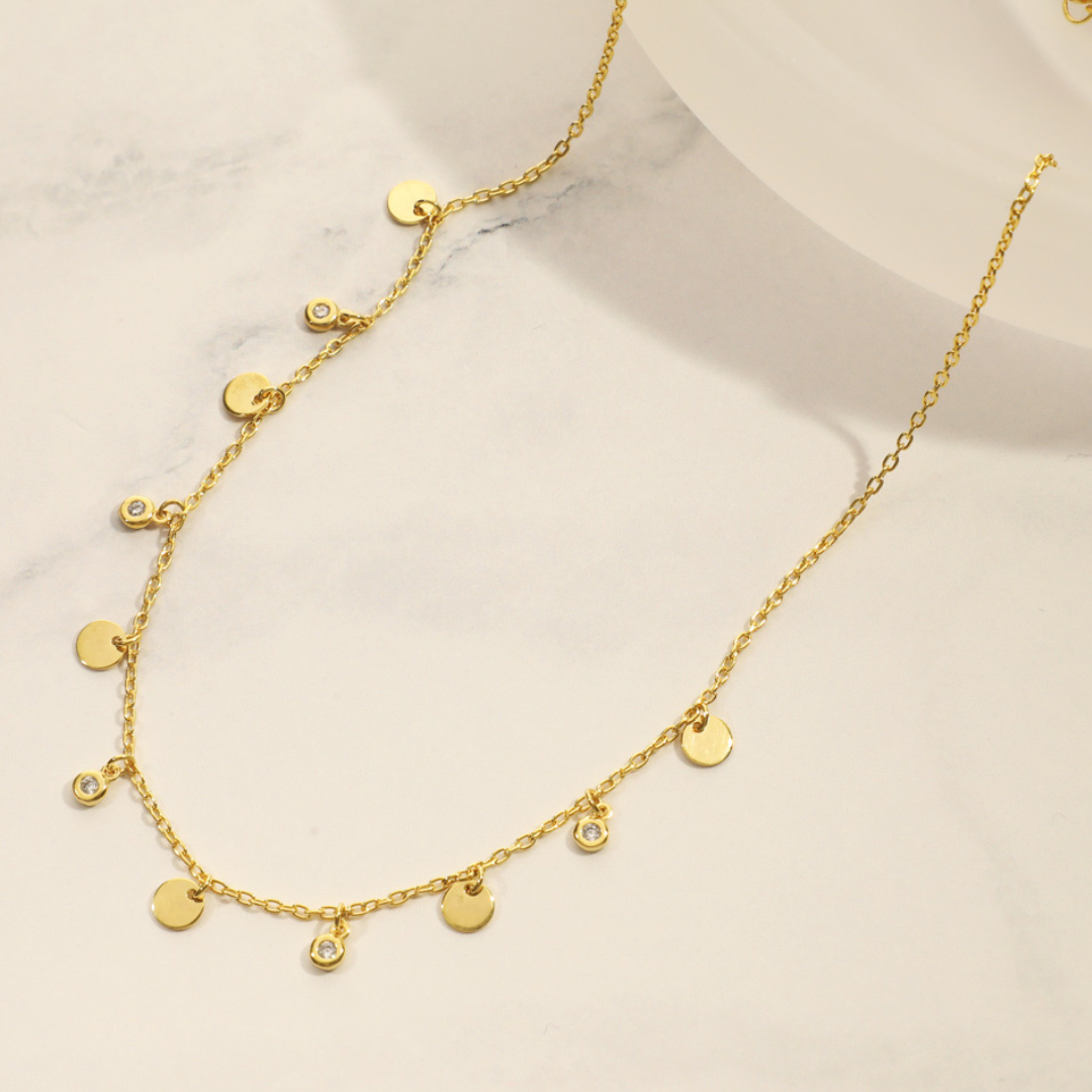 Mini Shakira Necklace : Gold filled details with Zirconia  36cm +6cm extension 4mm plates 1.5mm zirconia