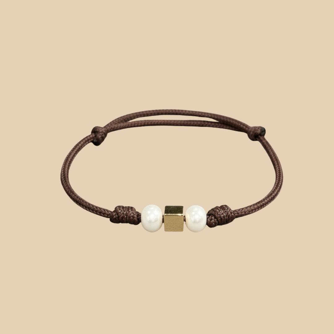 Solid Gold Cube and Pearl Cord Bracelet